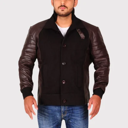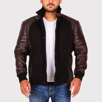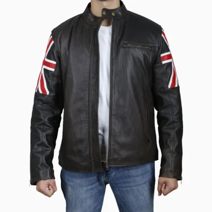 British Style Men’s Brown Leather Jacket – UK Flag Sleeves