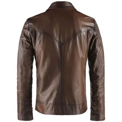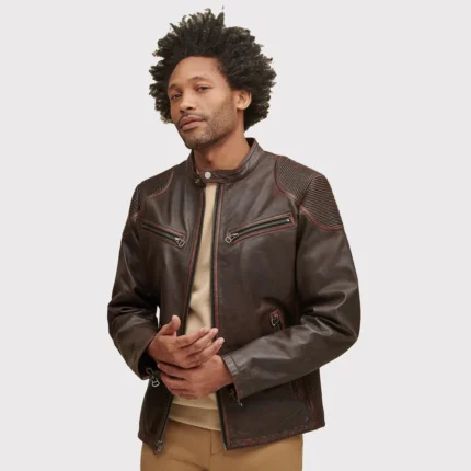 Brown Distressed Leather Cafe Racer Jacket – Men