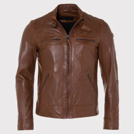 Men’s Cognac Leather Jacket – Sleek & Versatile