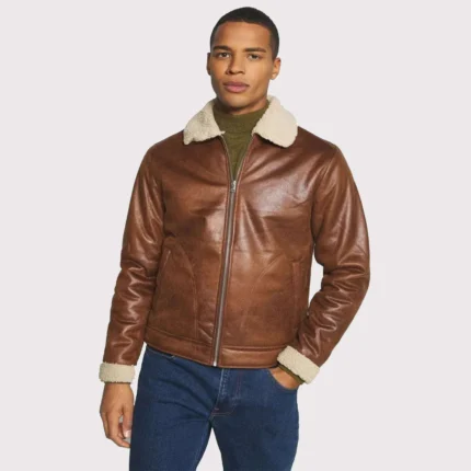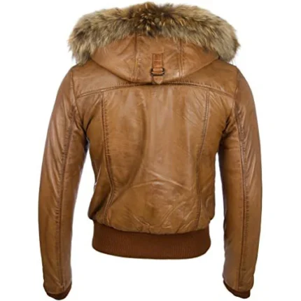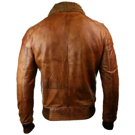 Men’s Modern Brown Leather Bomber with Detachable Fur Collar