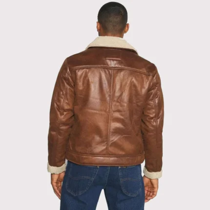 Men’s Brown B-3 Shearling Aviator Leather Long Coat
