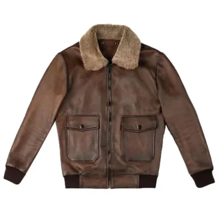Men’s Vintage A2 Brown Leather Shearling Bomber Jacket