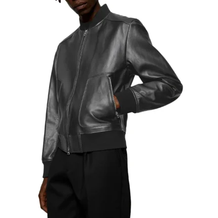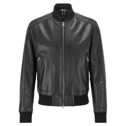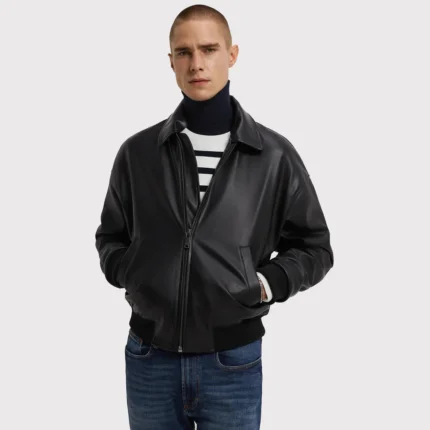 Men’s Black Bomber Leather Jacket – Sleek & Durable