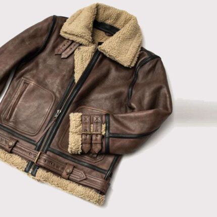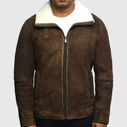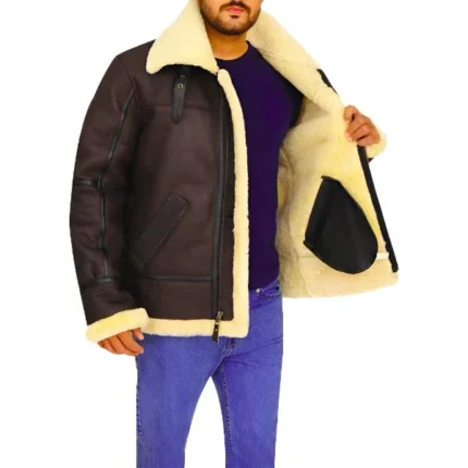 Men’s Classic Brown Sheepskin Aviator Jacket