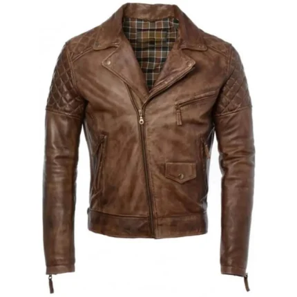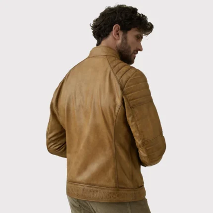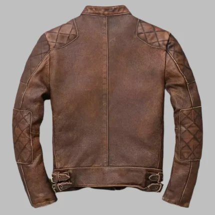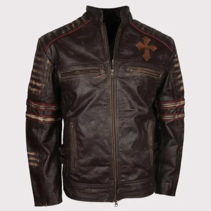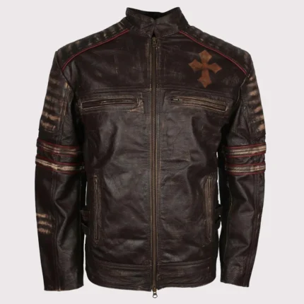 Men’s Brown Distressed Cafe Racer Biker Jacket