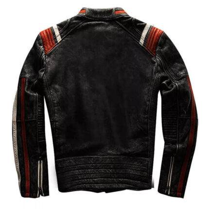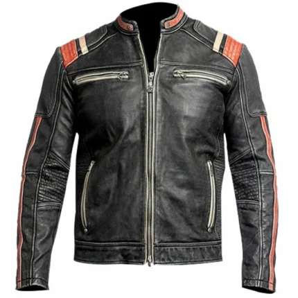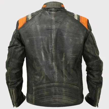 Cafe Racer Retro Distressed Black & Orange Leather Jacket
