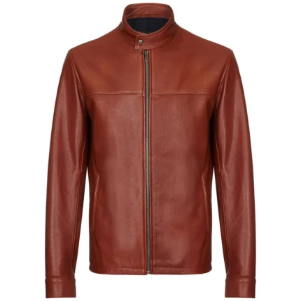 Genuine Brown Leather Cafe Racer Jacket – Men’s Vintage Style