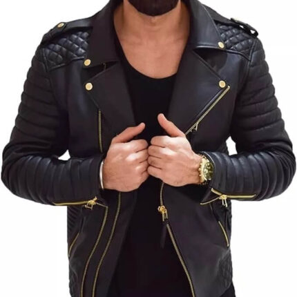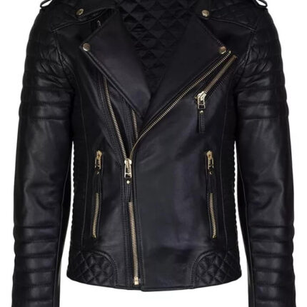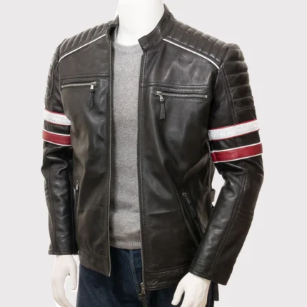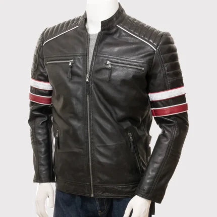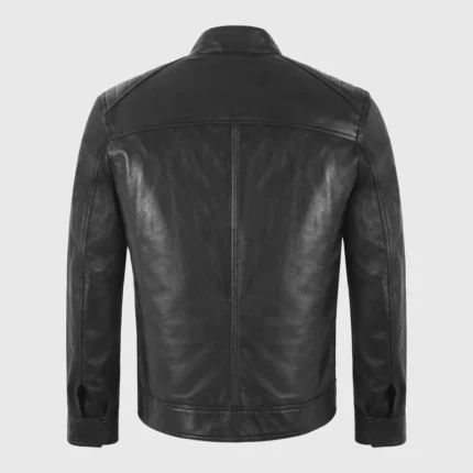 Genuine Black Leather Quilted Cafe Racer Jacket – Men’s Style