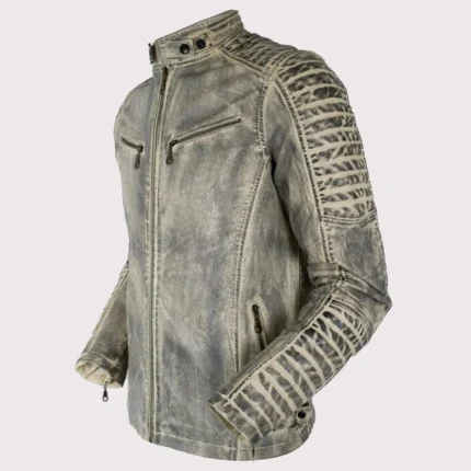 Men’s Classic Distressed Café Racer Jacket – Grey