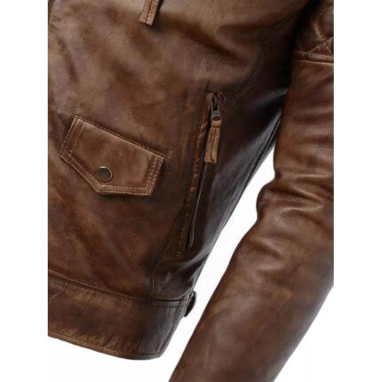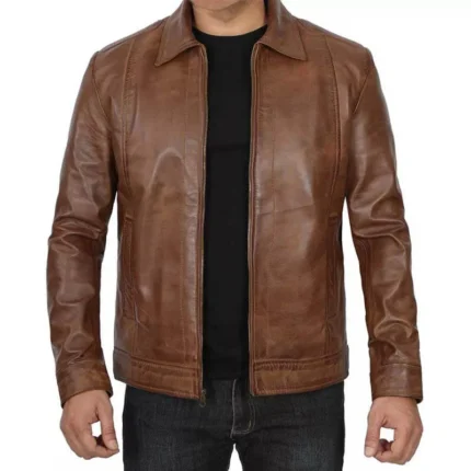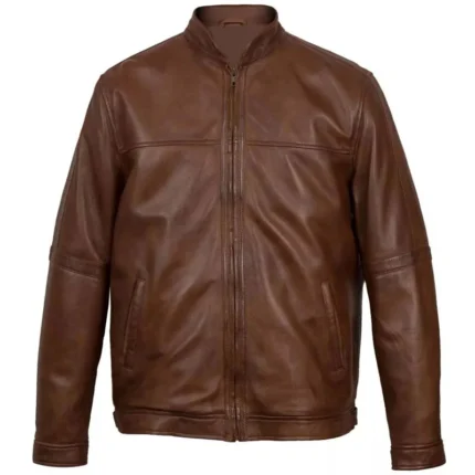 Brown Distressed Leather Cafe Racer Jacket – Men