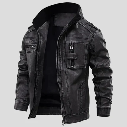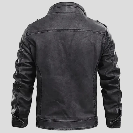 Men’s Stand-Collar Distressed Cafe Racer Jacket