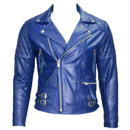 Men’s Genuine Blue Cafe Racer Leather Jacket