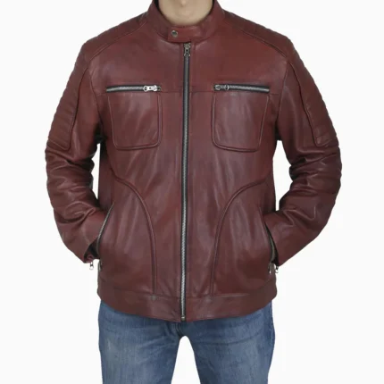 Genuine Brown Leather Cafe Racer Motorcycle Jacket – Men’s Style