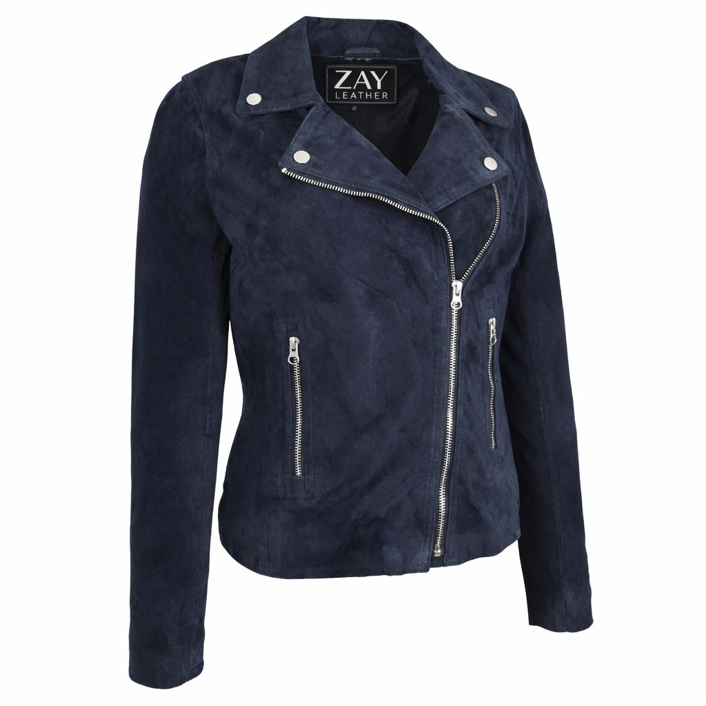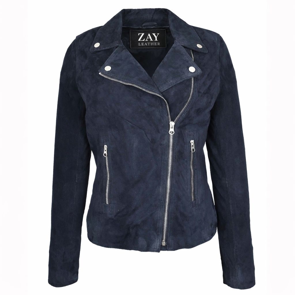 Blue Leather Jacket for Woman | Genuine Leather Ladies Biker Jacket – ZAY Leather