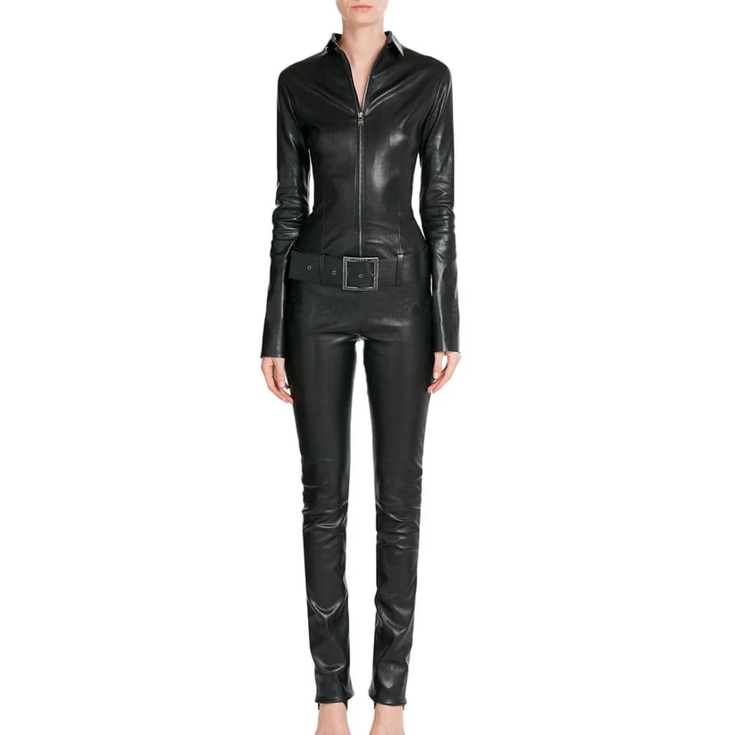 Ladies leather jumpsuits are designed to hug your body in all the right places. The tailored waist, belted detail, and long sleeves enhance curves and provide a polished appearance. - Timeless Appeal:
