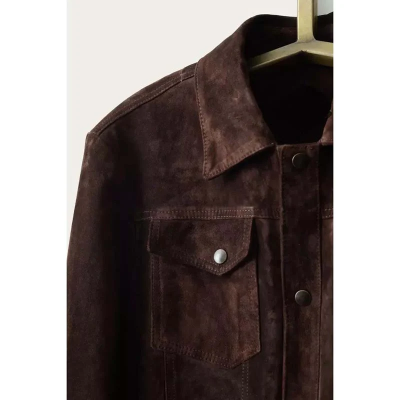This suede trucker jacket mens style takes inspiration from the iconic American trucker design, originally built for durability and freedom of movement. Now reimagined in rich brown suede, this jacket becomes a sophisticated outerwear piece that works just as well in the city as it does on the open road.