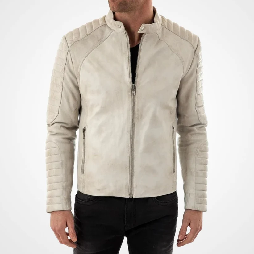 • Product Name: Men’s Leather Moto Jacket with Collar Stand