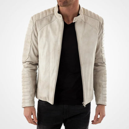 Mens Leather Moto Jacket with Collar Stand – Power, Precision, and Style in One